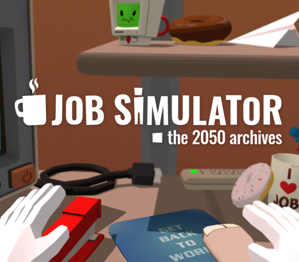 A tongue-in-cheek virtual reality experience for HTC Vive. In a world where robots have replaced all human jobs, step into the “Job Simulator” to learn what it was like ‘to job’. Features Throw a stapler at your boss! Learn to ‘job’ in four not-so historically accurate representations of work life before society was automated by robots! Use your hands to stack, manipulate, throw, and smash physics objects in an inexplicably satisfying way! Aggressively chug coffee and eat questionable food from the trash! Use the confluence of decades of VR research to accurately track your every movement to sub-millimeter precision so that you eat VR donuts, of course! Able to juggle tomatoes in real life? Do it in VR! Unable to juggle? There’s no cleanup required in VR! Gain valuable life experience by firing new employees, serving slushy treats, brewing English tea, and ripping apart car engines! Have a comfortable VR experience where vomiting is solely a gameplay mechanic, not a side-effect!